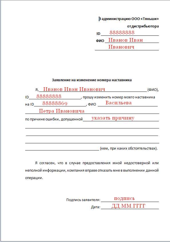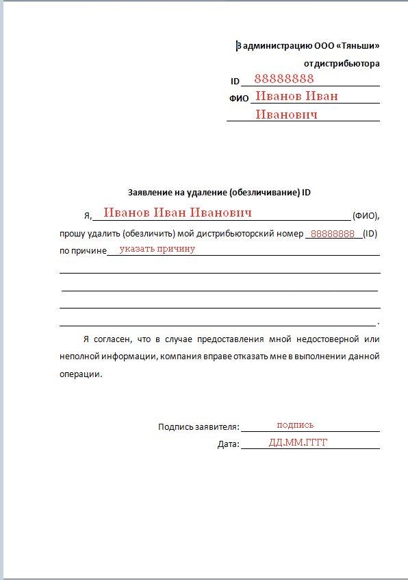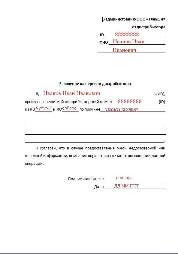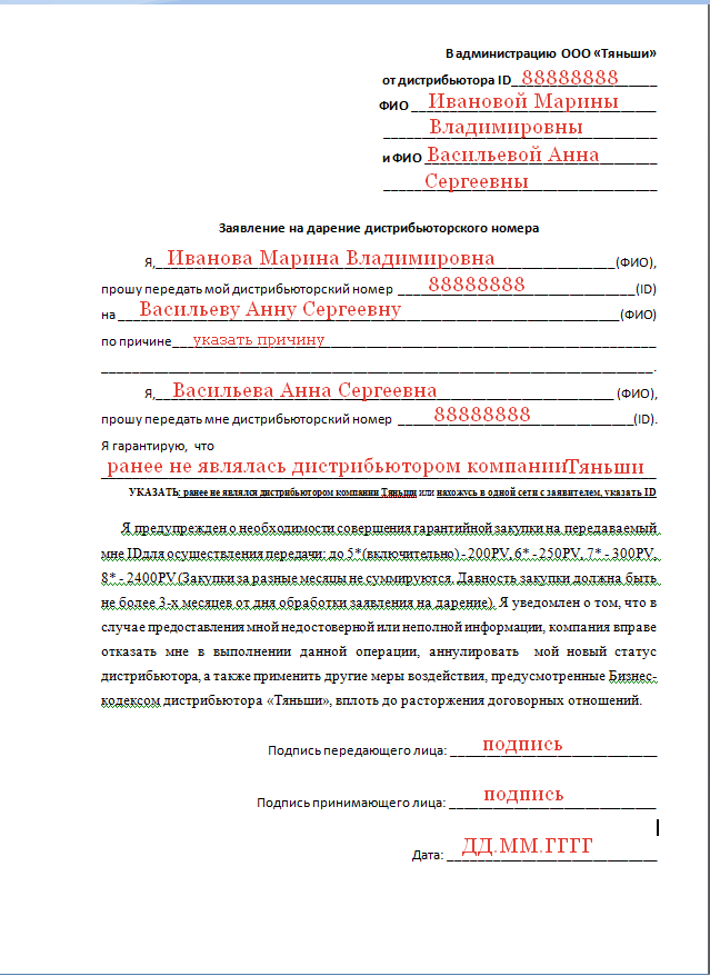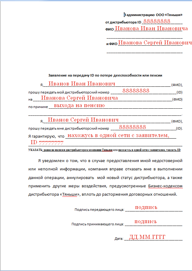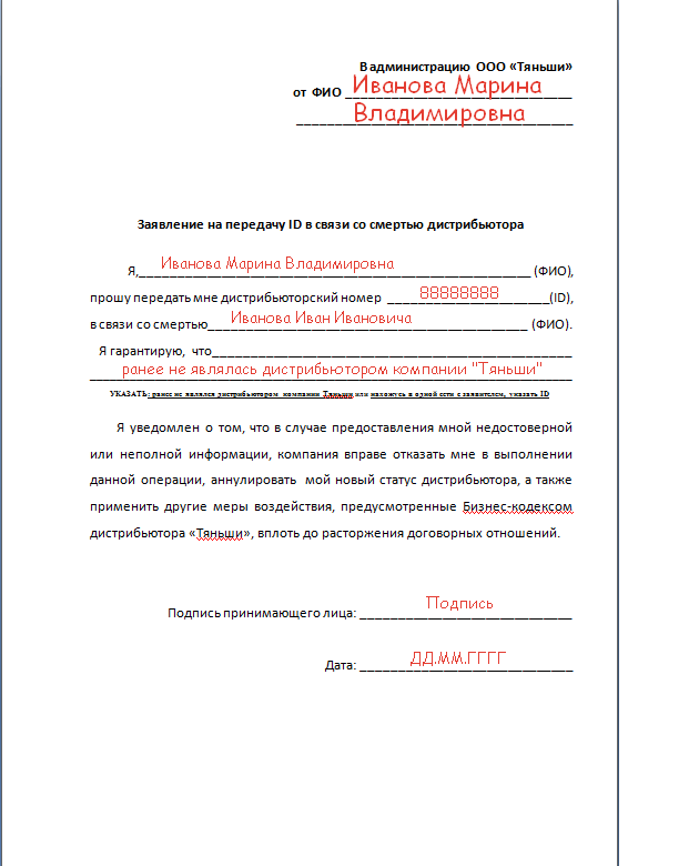 2 Заявление на наследование в связи со смертью дистрибьютора